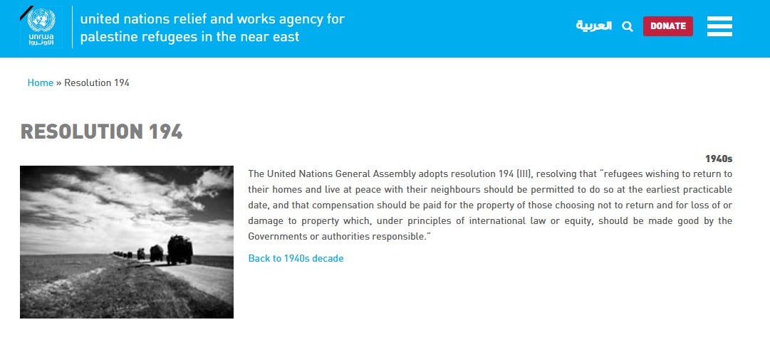 The Israeli government is never held accountable for violating Resolution 194.