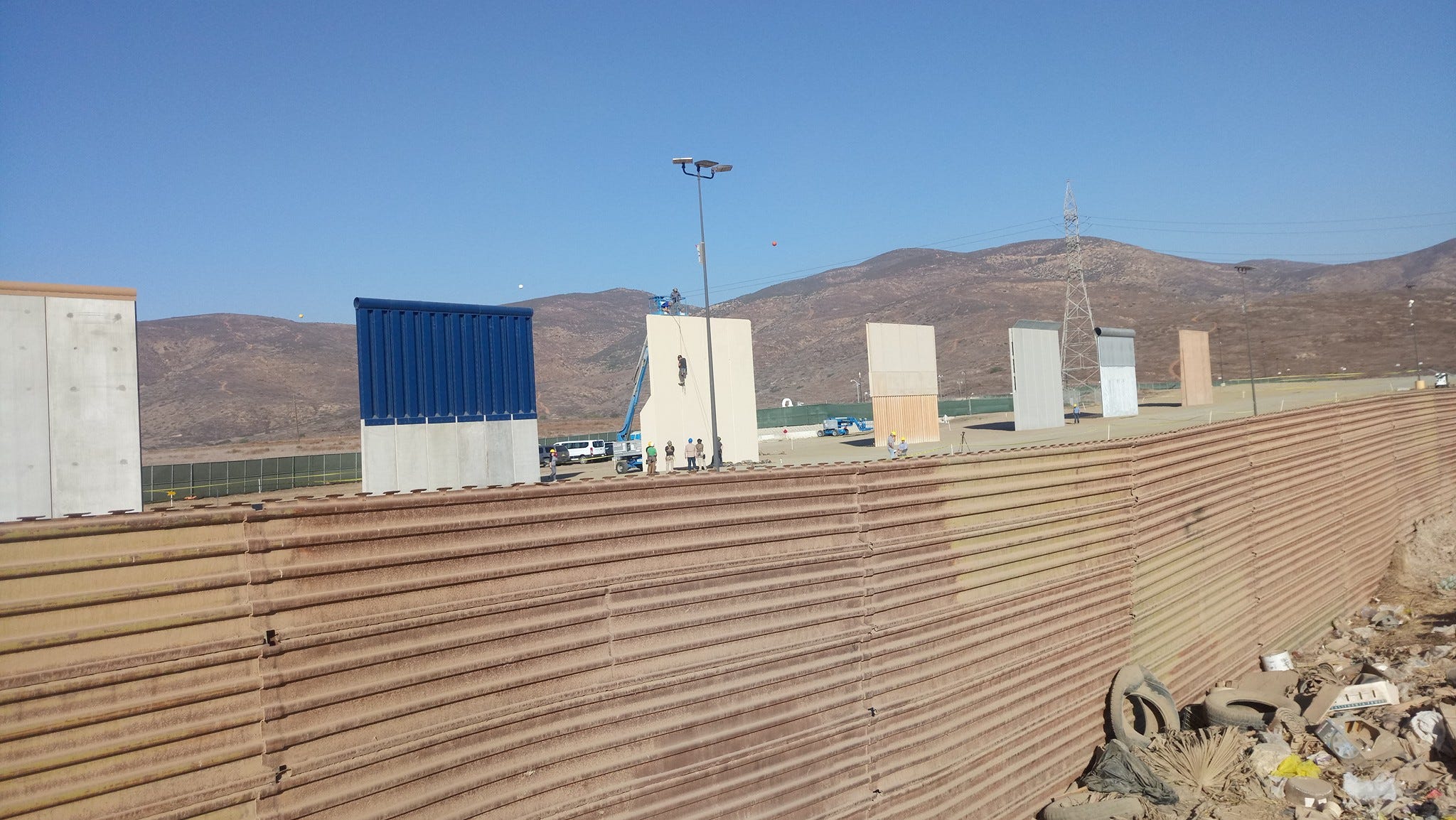 During the week, you can spot border patrol officials “testing” the wall for its durability by throwing things at each wall to see if they can penetrate it. In addition, you’ll see officials trying to climb the wall using rope while others watch and take notes. All of this is taking place within walking distance of the existing border walls and within the eyesight of Tijuana residents. The placement of these prototypes is just another intimidation tactic used by U.S. border patrol towards Tijuana residents.